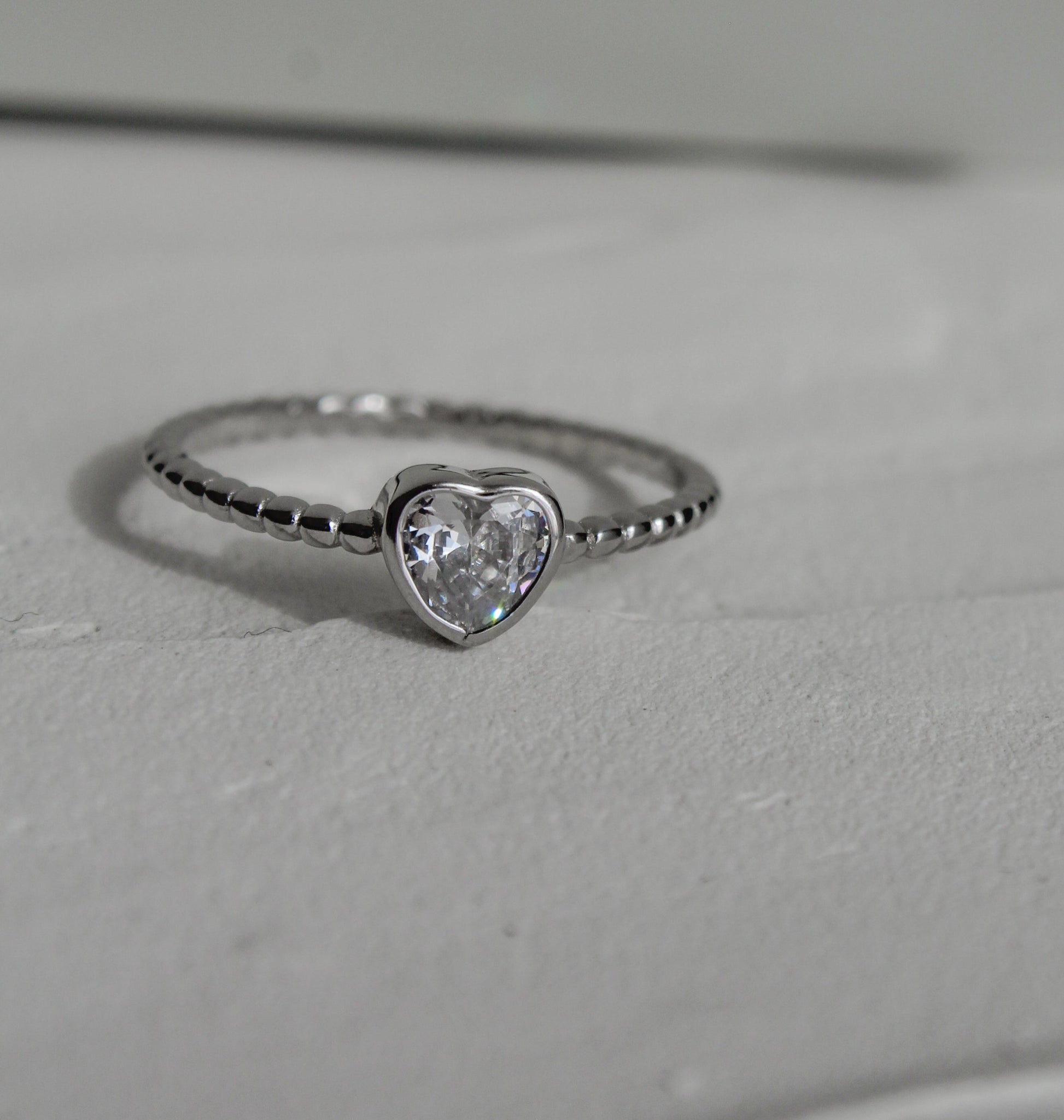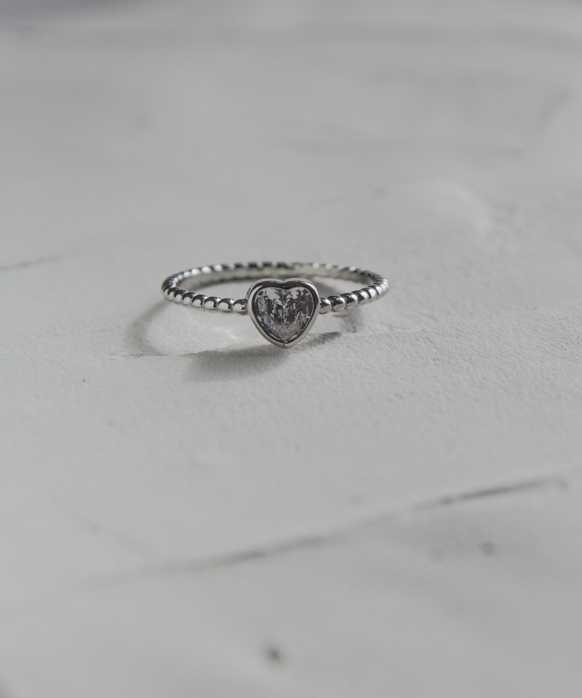 Shimmer with our Beaded Heart Ring! This playful piece features a textured beaded band and a dazzling heart-cut cubic zirconia set in sterling silver.