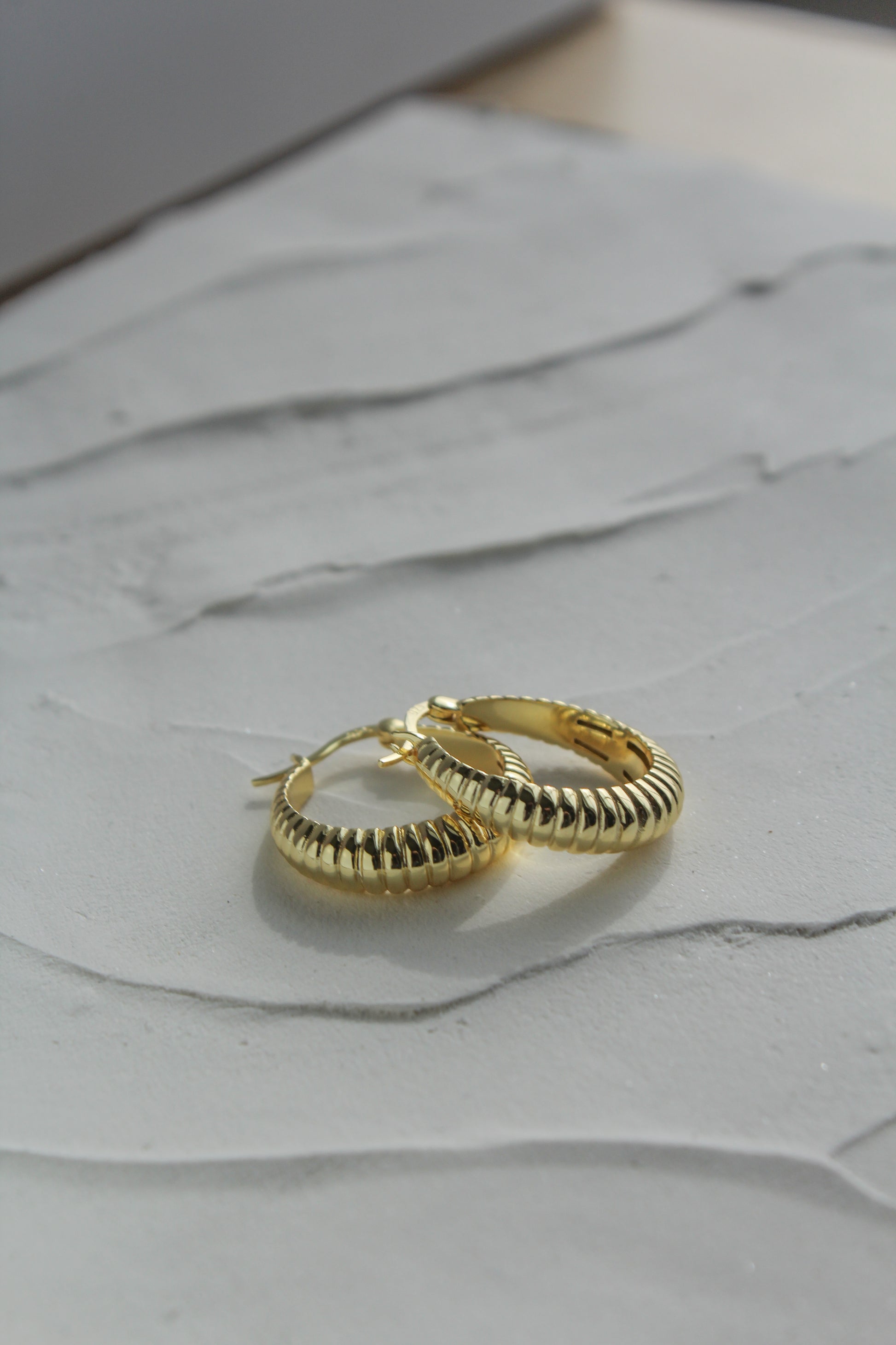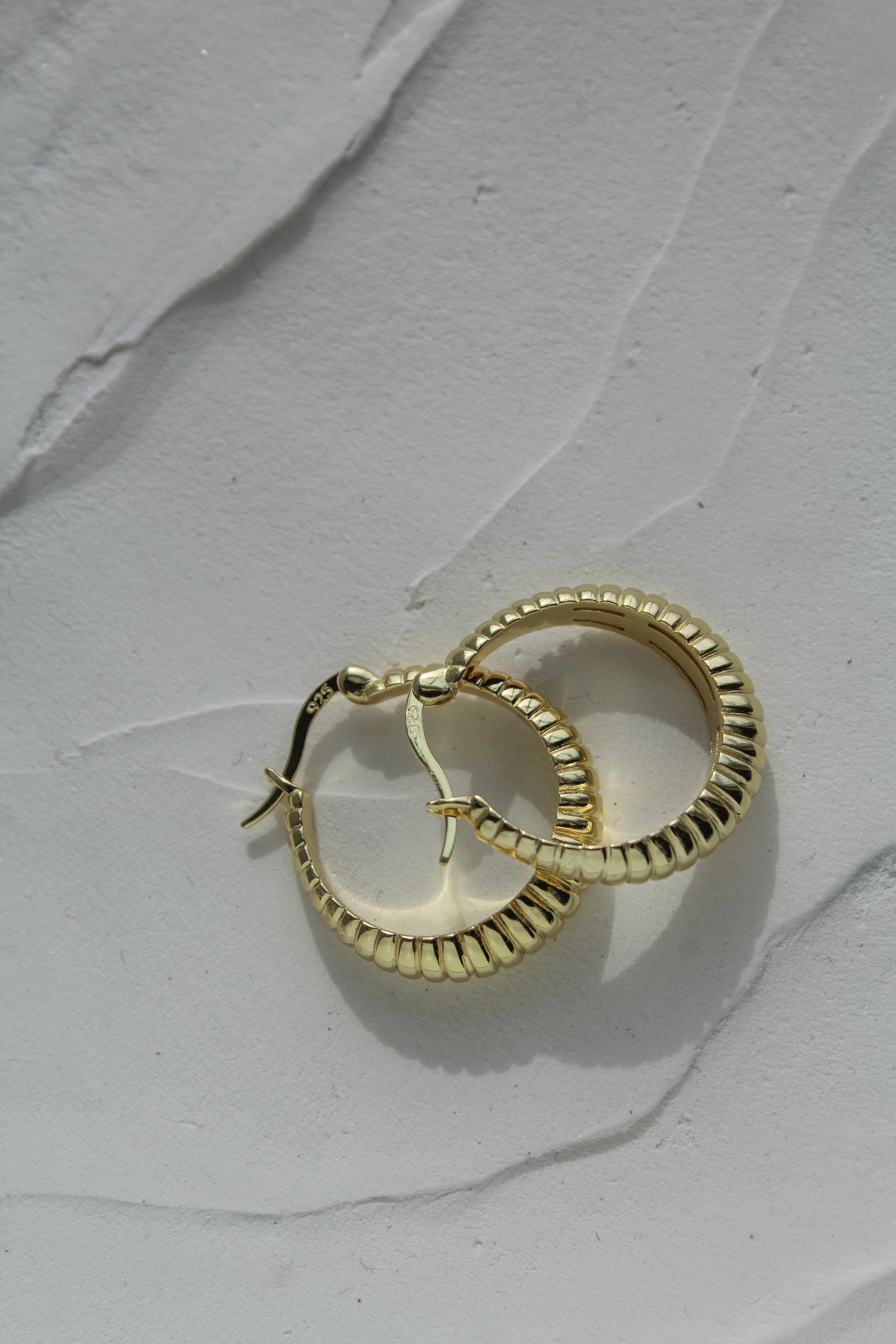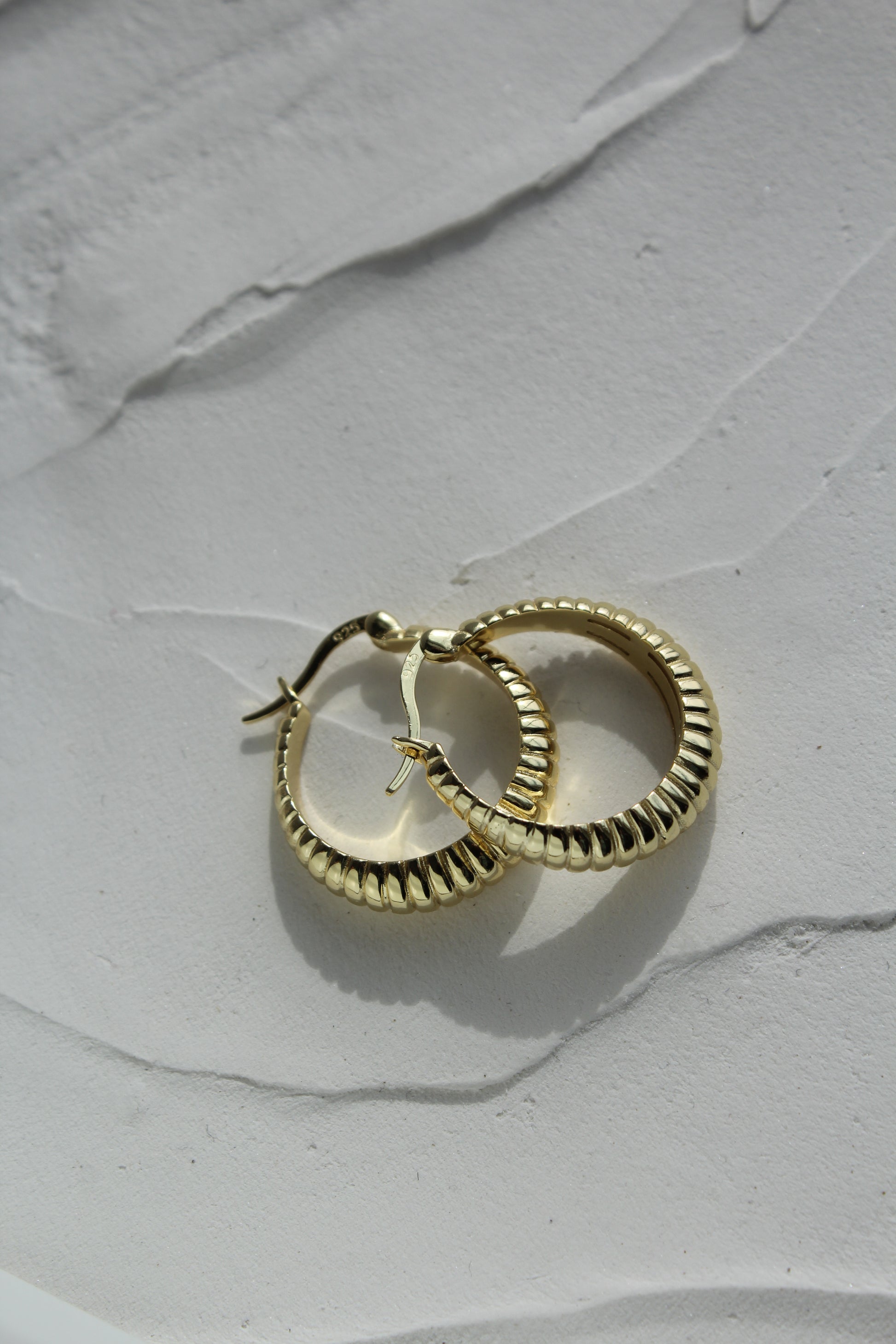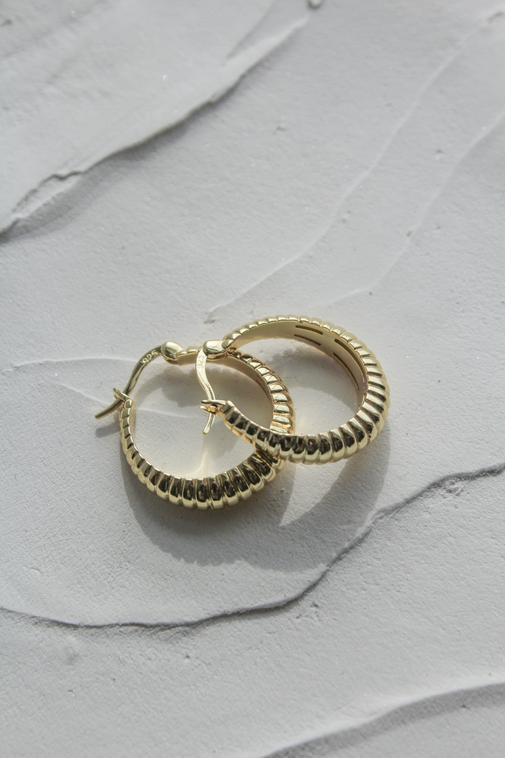 Our favorite- French Girl Hoops. Featuring textured lines and made with gold vermeil, these hoops bring a touch of Parisian chic to any day. You'll be the envy of all les filles!