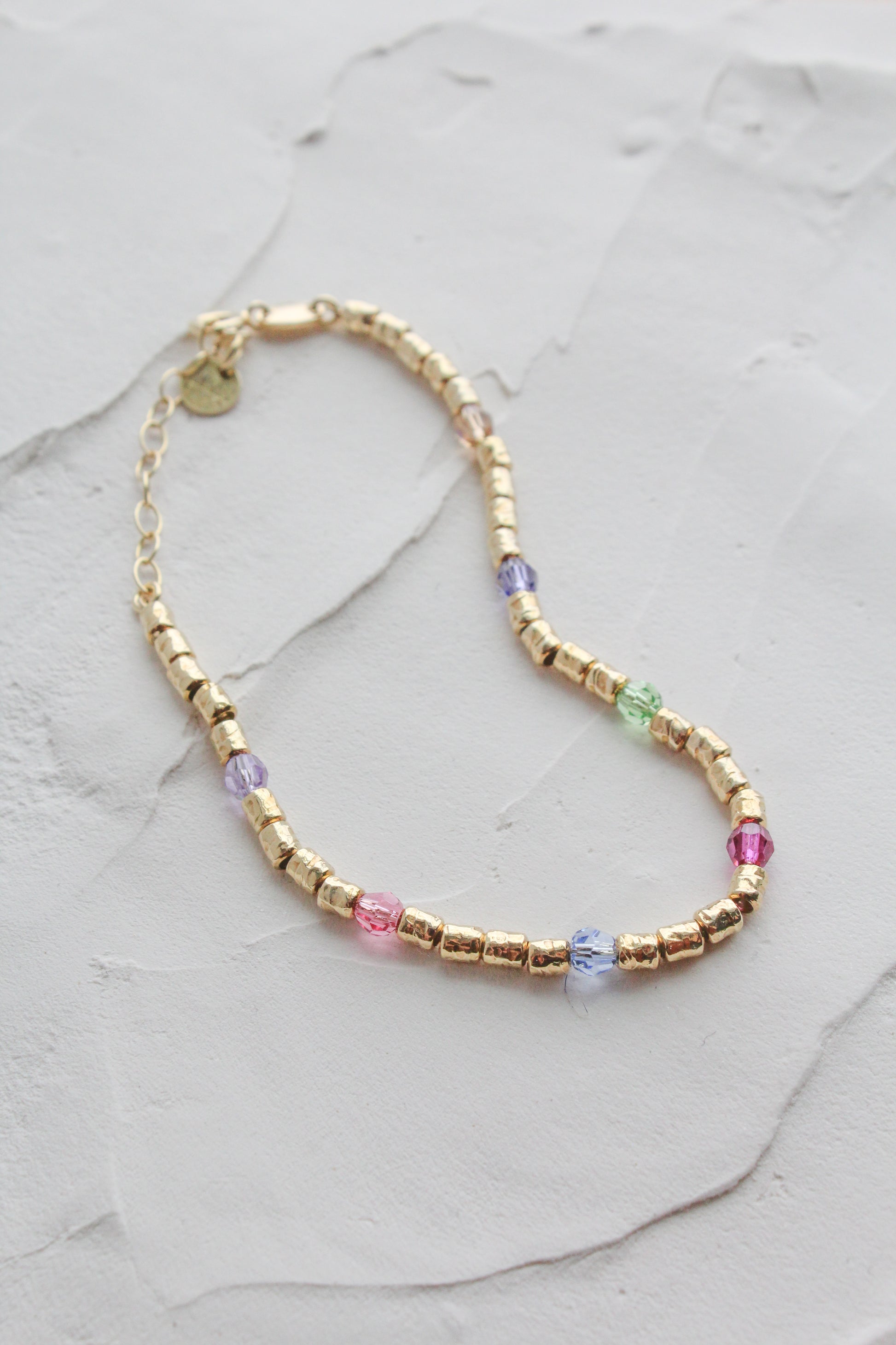 Shine with the Golden Days Bracelet! Sparkling with colorful Swarovski crystals and golden beads, this bracelet is the perfect accessory for adding some glam to any outfit. Bring on the compliments!